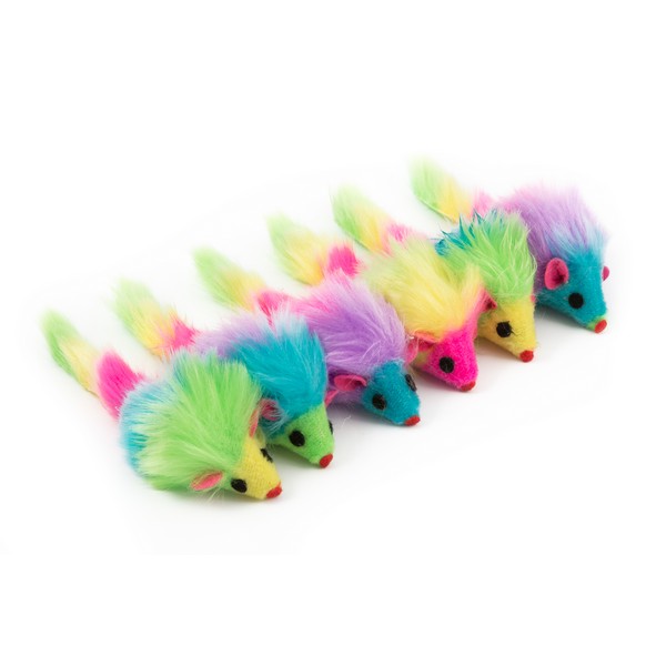 6 pk of furry mice means 6 times as much fun chasing, batting and clawing- rainbow coloured
