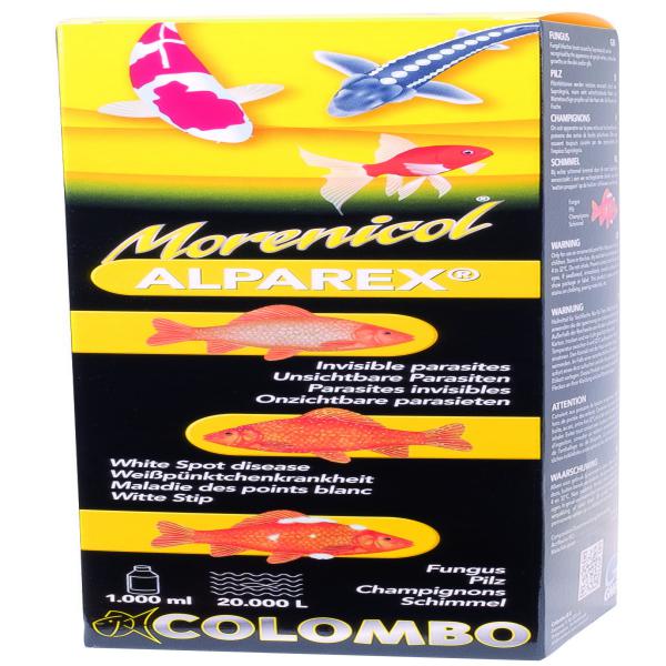 60305 Colombo Alparex Anti Parasite 500ml Colombo Alparex is active against invisible parasites that cause ‘grey skin disease’ caused by Costia, Chilodonella and Trichodina. Alparex is also a suitable treatment against fungus infections. 1,000ml treats 20,000 litres of pond water.