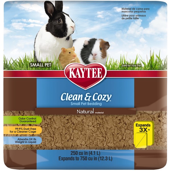 Clean & Cozy bedding that absorbs 2X more liquid than wood shavings Odour control guaranteed 99.9% dust-free Proprietary manufacturing process Product has been compressed into tight packaging to take up less shelf space Soft material providing cosy comfort and allows for snuggly burrowing Clean & Cozy is made by Kaytee and not outsourced, ensuring top quality product with every production Clean & Cozy bedding is available in additional fun colours and scents to add a touch of variety to your pets cage. The range also contains innovative bedding with delicious chews