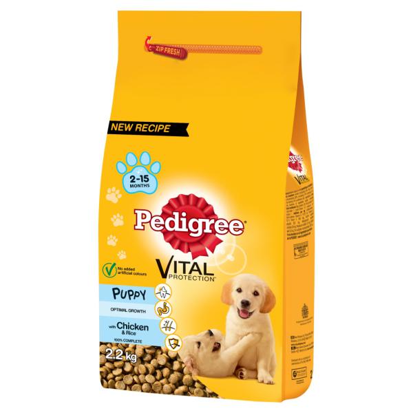 A complete dry dog food from the UK’s most popular brand. Developed with vets the Pedigree Complete range contains a special blend of natural oils, essential vitamins, minerals and dietary fibres that will help build strong natural defences in your dog. No wonder top breeders recommend it. With Fortivil – a special formulation of vitamins, minerals, oils and fibre which actively contributes to a shiny coat, healthy skin, excellent digestion and strong natural defences. ‘Health you can see’ Puppy 1. The right balance of calcium and phosphorus helps strengthen a puppy’s teeth and bones. 2. Contains a special blend of antioxidants that helps strengthen a puppy’s immune system. 3. Higher levels of quality meat protein to help proper muscle tissue develop