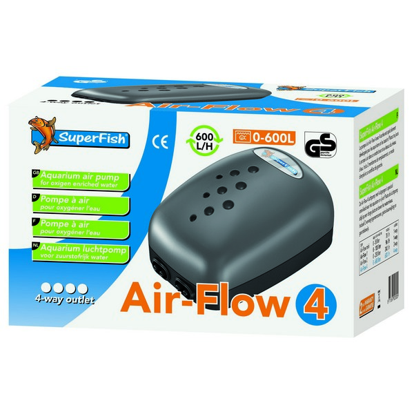 671030 Superfish Air-Flow 4 Ultra safe aquarium air pump. Supplied with replacement membrane for long term use.